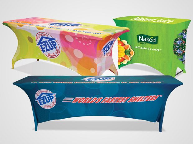 Stretch table covers Turn your EZ UP ® vendor table a marketing billboard with a stretch table cover. Dimensions: (0.6 mx 1.2 m) (0.8 mx 1.8 m) (0.8 mx 2.5 m)