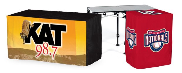 Maak uw marketingpakket compleet met de op maat gemaakte tafelhoezen die verkrijgbaar zijn in een hele reeks kleuren en maten. De professionele stoffen hoezen kunnen passend bij uw tentdak gemaakt