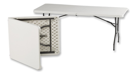Vendor tafel De duurzame Vendor tafels vouwen snel en makkelijk op en zijn simpel te vervoeren. Afmetingen: 2' x 4' (0.6 m x 1.2 m) 2.5' x 6' (0.8 m x 1.8 m)